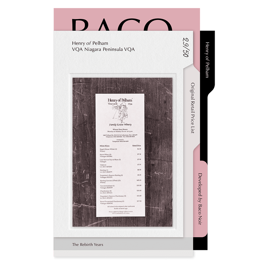 Printed across a series of 50 unique wine bottles, each photo invited wine lovers to explore the story of Henry of Pelham, year by year, bottle by bottle. It’s like a Wikipedia entry you can drink. The photo bottles were divided up into different eras throughout our 200-year history, from the 1780s until the present day.