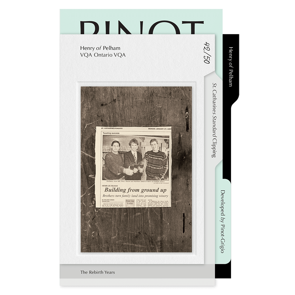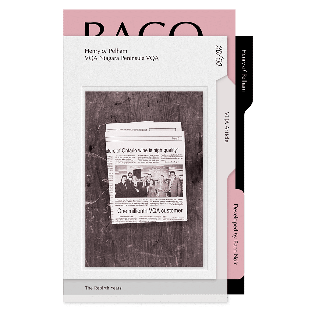 This newspaper clipping may have faded, but its significance hasn’t. Until Paul Jr. co-founded the VQA, Ontario wine was known as “not California” wine. Thanks to the quality standards set by the VQA, it’s now respected not just across North America, but the world.